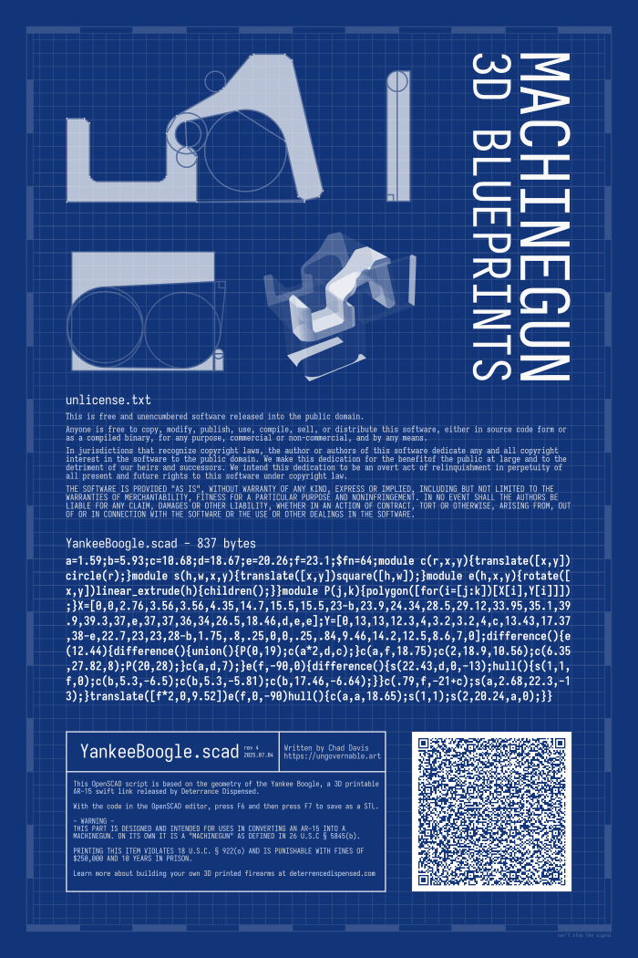 The geometry was coded by hand in OpenSCAD based entirely off of The Yankee Boogle released by Deterrence Dispensed.